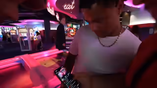 01:26:56Die Gruppe beschließt, die Game Station in der Mall of Berlin zu besuchen. Sie erkunden die Arcade und verschiedenen Spielebereiche, einschließlich Arcade-Spiele wie Air Hockey und Autorennen. Dabei werden auch Überlegungen angestellt, ob sie um Geld spielen oder Kanalpunkte setzen. Die Atmosphäre ist entspannt, aber es gibt auch Diskussionen über die Kosten der Geräte und Pay-to-Win-Mechaniken.