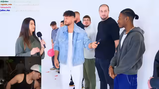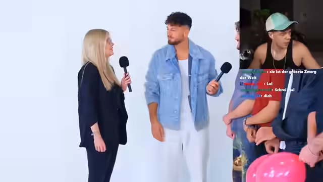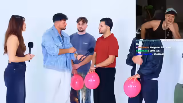 02:17:01Im Stream werden die männlichen Teilnehmer des Formats vorgestellt. Ein Teilnehmer ist 20, angehender Physiotherapeut, ein anderer 24 und studiert Wirtschaftschemie, ein dritter ist 27 und arbeitet als Content Creator. Ein vierter ist 22, Taxi- und Fahrer für beeinträchtigte Kinder. Eine Teilnehmerin, 24, hat den Ballon noch nicht platzen lassen, da es bisher nichts Negatives gab. Die Teilnehmer wurden aufgrund ihres Aussehens und einer oberflächlichen Formatwahl ausgewählt, was auf eifersüchtige Reaktionen stieß. Die Teilnehmer mussten Ballons platzen lassen, basierend auf optischen Kriterien und Bauchgefühl, bevor sie eine Frage stellen durften.
