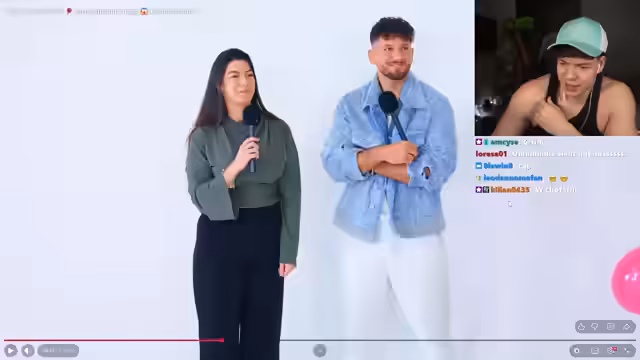 01:05:51Im weiteren Verlauf kommt es zu einem unglücklichen Zwischenfall, bei dem der Streamer versehentlich einen Luftstoß verursacht, was die Kandidatin als beunruhigend empfindet. Die Show geht mit der finalen Frage nach den zukünftigen Lebenszielen weiter. Der Powerlifter-Kandidat beschreibt seine sportlichen Ambitionen, was bei der Kandidatin auf geteiltes Zuspruch stößt, da sie befürchtet, der Lebenspartner müsse sich seinem strikten Plan anpassen. Am Ende des Formats verabschiedet sich die Kandidatin mit einem Ballon in der Hand, da sie sich für keinen der verbliebenen Kandidaten entscheiden konnte.