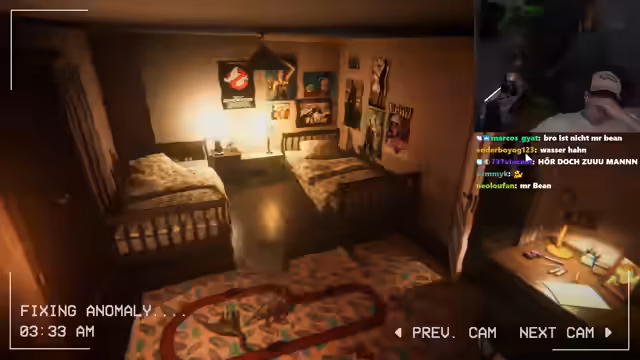 03:01:08Nach dem Minen-Spiel wechselt der Stream zu einem Horrorspiel namens "Paranormal Night Shift". Der Protagonist übernimmt die Rolle eines Geisterjägers, der in ein Haus geschickt wird, um dortige Anomalien zu finden. Zu Beginn ist die Atmosphäre noch entspannt, doch es wird betont, dass die Konzentration und genaue Beobachtung jedes Detailes entscheidend ist, sobald die Uhr Mitternacht schlägt. Die Aufgabe lautet, über mehrere Nächte zu überleben, ohne von den Geistern gefasst zu werden.