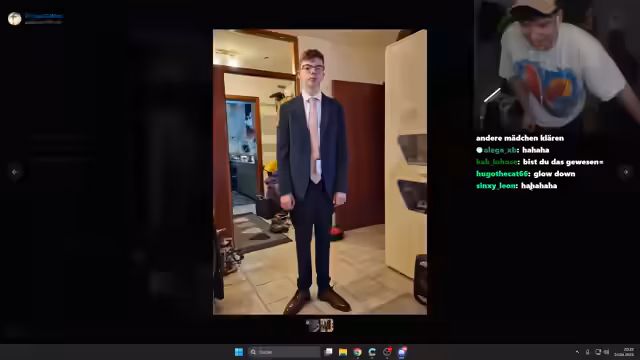 00:10:24Der Hauptteil des Streams widmet sich der Bewertung von über 100 eingereichten Glow-Up-Bildern. Marco versucht, respektvoll und oberflächlich zu bleiben, kritisiert aber wiederholt, dass viele Zuschauer ihr Gesicht verdecken oder Bilder mit zu kleinem Zeitabstand einreichen. Die Bewertungen sind gemischt: Viele erhalten ein "W" für Glow-Up, oft aufgrund besserer Frisuren oder Gewichtsabnahme. Ein häufiges Scherzthema des Chats ist der Vergleich von Bartwuchs mit Marco, was ihn regelmäßig wütend oder amüsiert kommentiert. Die Stimmung im Chat ist oft chaotisch und voller Trollereien.