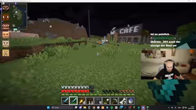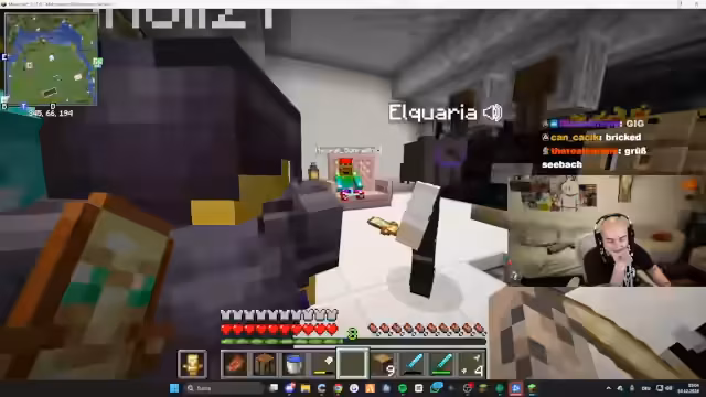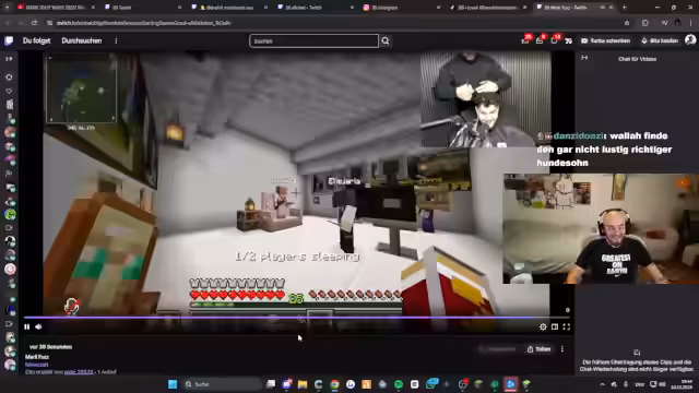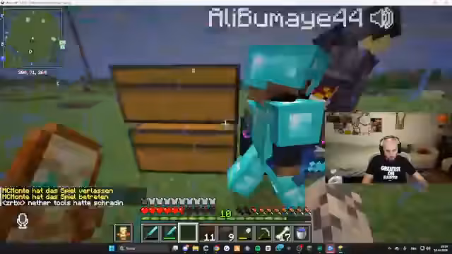 00:00:00Im Stream kommt es zu massiven Vorwürfen gegen einen Spieler namens Schradin. Konkret wird ihm vorgeworfen, eine wertvolle Netherit-Rüstung samt Werkzeug und einem Billohaus gesprengt zu haben, was als unverhältnismäßig kritisiert wird. Als Konsequenz soll Schradin als Hauptziel von Racheaktionen ausgemacht und verfolgt werden. Die Konfrontation eskaliert verbal und mit Drohungen wie "wenn ich dich im real-life sehe, was ich mit dir mache". Schließlich wird eine "Muschi-Allianz" als Gegenmaß ins Auge gefasst.