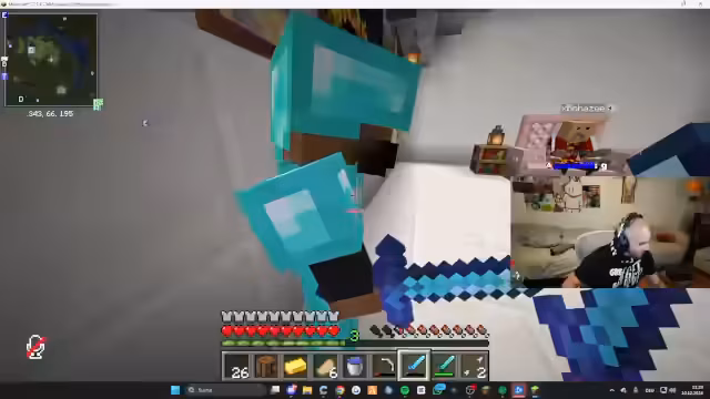 01:49:08Ein Kampfevent in Minecraft wird mit zwölf Schweinefleisch als Einsatz organisiert. Nach dem Kampf gibt es jedoch Spannungen, als Ali Schwierigkeiten mit einem anderen Spieler hat, ihm sein Schwert verweigert und es zu einem Streit um eine versprochene Belohnung kommt. Der Streit eskaliert und es droht ein PvP-Zwischenfall. Die Streamerin versucht zu schlichten und appelliert an die Ruhe.