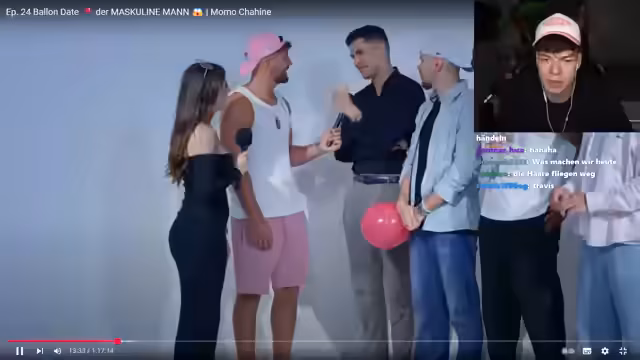 00:47:23Der Stream wechselt zum Format "Pop the Balloon", bei dem Single-Männer und -Frauen gegenseitig bewerten. Der Streamer, der sich selbst als "maskuliner Mann" bezeichnet, wird von den Kandidaten kritisiert. Sein Auftreten und seine Aussagen, wie z.B. die Vorliebe für dominante Männer und die Skepsis gegenüber Städten wie Duisburg, werden im Chat als "Mr. Minus Aura" verspottet. Die Kritik konzentriert sich auf seine wiederholten Nennungen seiner "Maskulinität" und als unnatürlich empfundenen Aussagen.