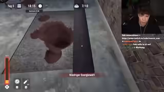 01:45:57Es wird darüber diskutiert, wie tief diesmal im Gefängnis-Simulator gegraben werden muss, wobei Schätzungen von 6-7 bis 100 Metern abgegeben werden. Es wird beschlossen, tiefer zu graben und mehr Energie freizuschalten. Es wird eine goldene Spinne gefunden, die für 40 Dollar an den Wachmann verkauft wird, obwohl gehofft wurde, mehr zu bekommen. Es wird ironisch auf einen Tipp im Chat reagiert, der empfiehlt, auszubrechen. Es wird erwähnt, dass noch 70 Follower bis zu den 200.000 fehlen. Es wird überlegt, einen Submarathon zu veranstalten, aber vorher soll ein 24-Stunden-Stream gemacht werden, der lockerer gestaltet sein soll und IRL-Elemente, FIFA und "Frauen klären für Zuschauer" beinhalten könnte.