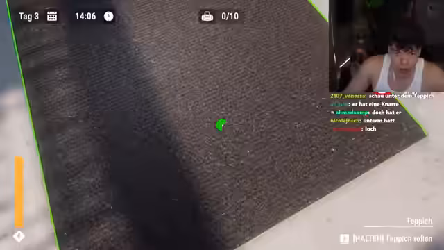 02:55:08Nachdem das soziale Experiment abgeschlossen ist, wechselt der Streamer zum Hauptspiel des Tages: Escape Prison Simulator. Ziel ist es, aus einem Gefängnis zu entkommen, indem man in der Zelle nach Gegenständen sucht, diese handelt und mit einem Löffel einen Tunnel grabt. Der Prozess erweist sich als äußerst fordernd und stressig, da der Charakter eine begrenzte Energie hat und der Wache immer wieder ausweichen muss, um den Fortschritt nicht zu gefährden.