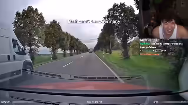 00:51:47Die angekündigte Dashcam-Reaktion beginnt. Marco reagiert auf verschiedene Fahrvideos, insbesondere auf einen Vorfall, bei dem ein Fahrer bei einem Blitzer von der Straße abkommt, was eine Diskussion über Blitzer und Straßenkontrollen auslöst. Anschließend wird ein Unfall mit Fahrerflucht gezeigt, bei dem der Verursacher zunächst zurückkehrt, um die Schäden zu begutachten, aber dann erneut flieht. Marco kritisiert das rücksichtslose Fahrverhalten.