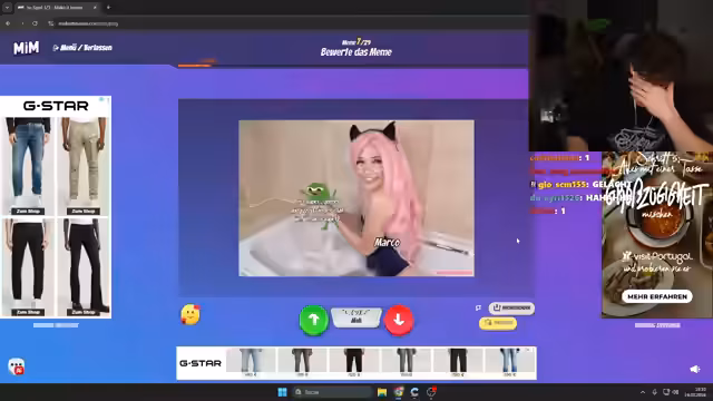 00:24:59Auf Anregung der Community spielt der Streamer spontan das Spiel 'Among Us' mit Zuschauern. Kurz darauf startet er das Format 'Make-It-Meme', bei dem die Community Memes zu vorgegebenen Bildern erstellen und der Streamer diese bewertet. Der Streamer äußert seine Frustration über die mangelnde Qualität und teilweise unpassenden Memes und droht, das Format aufgrund der schlechten Resonanz zu beenden. Trotzdem werden mehrere Runden gespielt, in denen der Streamer seine Bewertung abgibt und teilweise humorlos reagiert.
