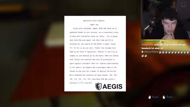 02:58:08Nachdem der Streamer alle Aufgaben in den verschiedenen Häusern erfüllt hat, gelangt er schließlich zu Haus 117, dem Endziel des Spiels. Er muss einen Code eingeben, um eine Tür zu öffnen, und sucht verzweifelt nach Hinweisen. Der Streamer ist überwältigt von der Komplexität des Spiels und bittet den Chat um Hilfe. Schließlich findet er den Code 5192 und öffnet die Tür. Als er eintritt, stößt er auf Sally, die ihn anfleht, sie zu befreien. Der Streamer muss nun eine letzte, entscheidende treffen, das Schicksal der Nachbarschaft.