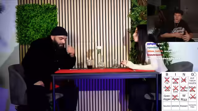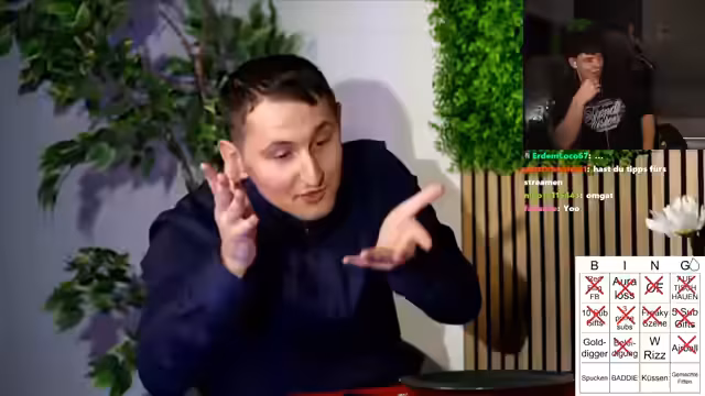 01:16:38Zu Beginn des Clips wird das Spiel 'Frankfurt-Tinder-Bingo' eingeführt, bei dem das Ziel darin besteht, eine Reihe voll zu bekommen. Der Streamer erläutert verschiedene Begriffe für das Bingo, darunter 'Airball', 'Küssen', 'Spucken' und 'Aura Loss'. Gleichzeitig geht er auf technische Aspekte ein und kommuniziert mit seinem Chat, um Unterstützung bei der Einrichtung eines neuen Kanals für Zuschauereinsendungen zu erhalten. Er bittet die Zuschauer, Screenshots von ihren RIS-Dating-Chats zu senden, die er dann im Stream bewerten und roasten wird. Dies ist ein wiederkehrendes Format, bei dem er unterhält und die Chat-Interaktion fördert.