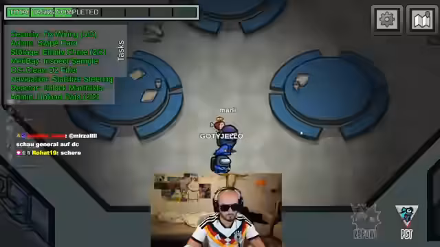 02:03:02In der Endphase der Runde wird ein letzter Mord in Medbay verübt. Der Streamer analysiert die Bewegungen der letzten verbliebenen Spieler, darunter Rohat, G-Tasty und Pannewitz, und kommt zu dem Schluss, dass Rohat der Täter sein muss, da er eine verdächtige Route genommen hat. Trotz des Votens gewinnen die Impostor, da die Crewmates ihre Aufgaben nicht vollständig erledigt haben. Der Streamer kommentiert den Sieg der Impostor sarkastisch und ist frustriert über den mangelnden Teamgeist der Mitspieler.