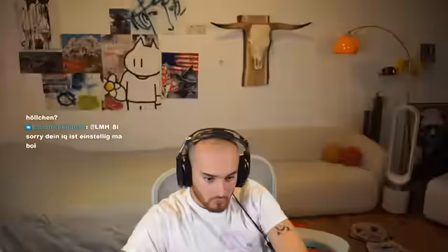 01:18:04Der Stream beginnt mit einer technischen Anweisung, um die Teilnehmer ohne Kamera auszublenden, was zu einer vorübergehenden Bildstörung führt. Ali Bumaye zeigt sich technisch versiert und präsentiert sein Zimmer, während der Streamer seine neuen Tattoos vorstellt. Eines zeigt einen Sniper aus Modern Warfare 2, als Symbol für seine damalige Lebensphilosophie, ein anderes auf der anderen Hand einen Torero und einen Stier, inspiriert von einem Besuch in Madrid und seiner Faszination für Stierkämpfe.