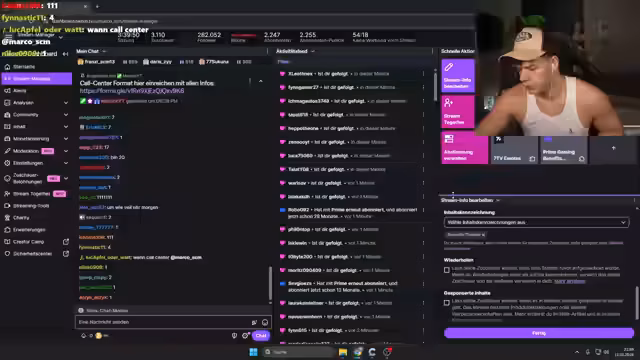 Es wird über persönliche Finanzen und die Körpergröße gesprochen. Ein neues Discord-Format für gebannte Zuschauer wird angekündigt. Streamer berichten von hohem Aufwand, geringem Einkommen und Burnout-Gefühlen. Große Pläne umfassen einen Callcenter-Stream, eine Live-Bewertungs-Kooperation und Reaktionen auf YouTube-Videos.