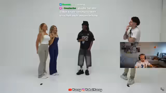 00:11:36Der Streamer kommentiert das Aussehen der ersten Kandidatin, Lynn, und lobt ihr Glow-Up. Er gibt Live-Advice bezüglich Frauen mit bestimmten Zahlenkombinationen in ihren Profilen oder Tattoos und warnt vor potenziellen Problemen. Lynn wird nach Gründen gefragt, warum sie besser als andere Mädchen sei, woraufhin sie mit 'nett, süß und Humor' antwortet. Der Streamer macht eine Insta-Story, um Zuschauer zum Live-Stream einzuladen. Er reagiert auf Kommentare im Chat und gibt humorvolle Ratschläge bezüglich der Interpretation von Zahlenkombinationen wie '555' in Bezug auf potenzielle Partnerinnen. Abschließend macht er eine Insta-Story, um Zuschauer zum Live-Stream einzuladen und ihre Gehirne verrotten zu lassen.