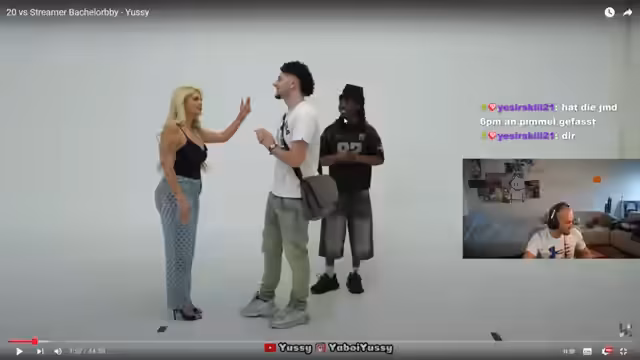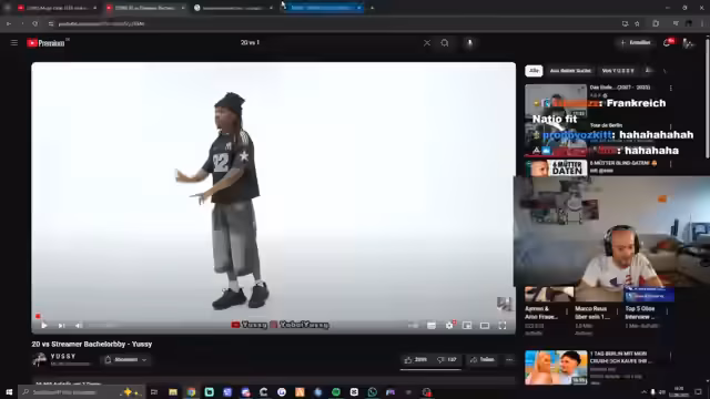 00:03:14Der Streamer bereitet sich darauf vor, das Video '20 vs. Bachelor Baby' zu schauen und interagiert mit dem Chat. Er äußert sich zu vorherigen Events wie 6PM in Berlin und München, wobei er Berlin bevorzugte. Es wird auf das Aussehen von Personen im Video eingegangen, insbesondere auf das Bein eines Teilnehmers und dessen unvorteilhafte Hose. Der Streamer betont, dass er bei Kooperationen sehr pünktlich ist und erzählt von seinem eigenen '20 vs. 1'-Erlebnis, bei dem er Goodie Bags an die Teilnehmerinnen verteilte. Er reagiert auf Kommentare im Chat und gibt humorvolle Ratschläge bezüglich der Interpretation von Zahlenkombinationen wie '555' in Bezug auf potenzielle Partnerinnen. Abschließend macht er eine Insta-Story, um Zuschauer zum Live-Stream einzuladen und ihre Gehirne verrotten zu lassen.