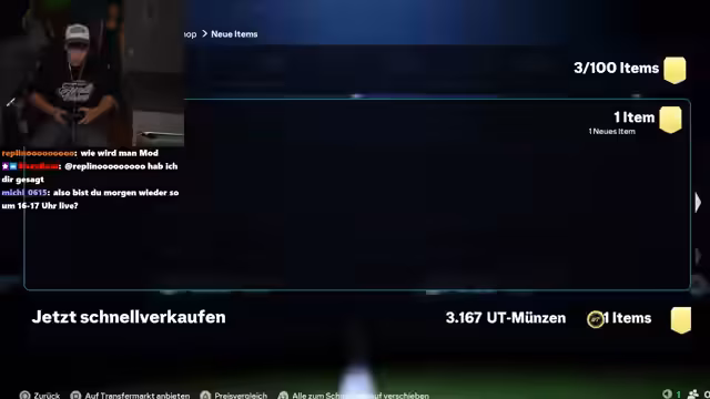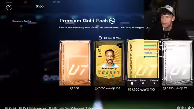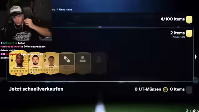 01:47:56Nach der frustrierenden Niederlage im FIFA-Spiel entscheidet sich der Streamer, wieder Packs zu öffnen in der Hoffnung, bessere Spieler zu ziehen. Er kündigt an, einen Mbappé ziehen zu wollen. Trotzdem bleibt das Glück aus und er zieht hauptsächlich durchschnittliche Spieler. Es wird überlegt, welche Spieler wertvoll sind und welche verkauft werden sollen. Der Streamer fragt den Chat um Rat, welche Spieler er behalten oder verkaufen soll. Es wird auch über die Preise von Spielern wie Lamin Jamal und Van Dijk diskutiert. Der Streamer zieht weiterhin Packs, ist aber mit den Ergebnissen unzufrieden. Er zieht hauptsächlich Frauen und durchschnittliche Spieler, aber keinen Walkout. Es wird überlegt, ob es an der Uhrzeit liegt oder ob der Account verflucht ist. Der Streamer zieht weiterhin Packs, aber ohne Erfolg.
