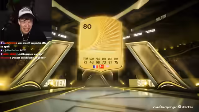 01:49:30Der Streamer öffnet mehrere FIFA-Packs und versucht, Walkouts zu ziehen, hat aber wenig Erfolg. Er zieht hauptsächlich Spieler mit niedriger Bewertung und zeigt sich frustriert. Gleichzeitig diskutiert er im Chat über verschiedene Spieler, wie Lamin Jamal, Van Dijk und Ronaldo, und deren Bewertungen im Spiel. Er äußert auch seine Meinung über die Pack-Wahrscheinlichkeiten und den Wert bestimmter Spieler. Streamer öffnet erfolglos viele FIFA-Packs.