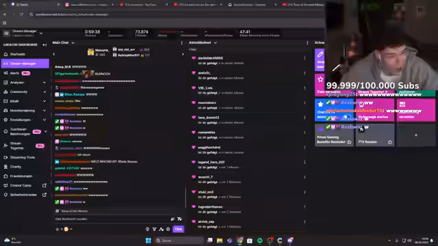00:58:04Der Streamer startet einen spektakulären Versuch, den deutschen Sub-Rekord auf Twitch zu brechen. Der Plan sieht vor, dass die gesamte Community gleichzeitig einen Sub spendet, sobald der Streamer es ankündigt. Der Countdown läuft, und als der Rekord von 100.000 Subs fast erreicht ist, fehlt nur noch eine einzige Spende. Im entscheidenden Moment kommt der Sub, der den Rekord knackt, woraufhin der Streamer und der Chat in Ekstase verfallen, gefolgt von dem Versuch, eine Konfetti-Kanone auszulösen, um den Erfolg zu feiern.