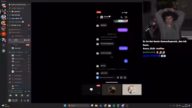 00:15:01Um die Community einzubinden, ruft der Streamer zu einer interaktiven Aktion auf. Er bittet alle Zuschauer mit Snapchat, Screenshots ihres Bitmojis und ein Selfie in einen neu erstellten Discord-Channel hochzuladen. Ziel ist ein Vergleich der echten Gesichter mit den digitalen Avataren. Zudem werden die Zuschauer gefragt, ob sie Tinder nutzen, um für ein potenzielles Wett-Szenario zu mobilisieren, bei dem der Streamer einen erfolgreichen Date-Versuch wettet. Eine weitere Idee ist die Durchführung eines deutschen Sub-Rekordversuchs.