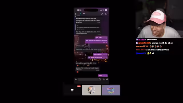 00:01:47Das Zentrum des Streams liegt in der Analyse verschiedener Beziehungssituationen von Zuschauern. Eine Konversation dreht sich um einen Mann namens Loki, der mit einer Frau schreibt. Er hat ein Bild seines Bizeps geschickt, woraufhin sie mit der Aussage „damit zu kuscheln wäre crazy“ und einem süßen Emoji geantwortet hat. Der Streamer und der Chat unterstützen Loki bei der Klärung der Situation, die ein Treffen am Dienstag beinhaltet.