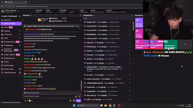 02:15:17Ein kritischer Vorfall ereignet sich, als die Telefonnummer eines vorherigen Teilnehmers, Raoul, versehentlich im Stream gezeigt wird. Dies führt zu einer Welle von Anrufen, die dessen WhatsApp-Zugang lahmlegen. Raoul ist sichtlich verärgert und frustriert. Marco muss die technischen Probleme beheben und erhält gleichzeitig eine Nachricht, dass Raoul's Nummer als auch die von 'Sophie' möglicherweise 'exposed' sind, was die gesamte Situation kompliziert.