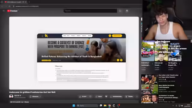 00:52:05Marco startet eine Umfrage, bei der die Community entscheiden kann, welches Video er zuerst reagieren soll: ein neues Video von MrBeast oder ein Celtics-Video über ein Prostituierten-Dorf in Bangladesch. Nachdem die Abstimmung für das Celtics-Video ausgefallen ist, beginnt er mit der Reaktion. Er gibt vor dem Anschauen eine Triggerwarnung und berichtet über die Vorbereitung des Celtics-Teams, das undercover recherchieren will, ob auch Minderjährige in der Prostitution arbeiten, und betont, wie heikel die Lage ist.