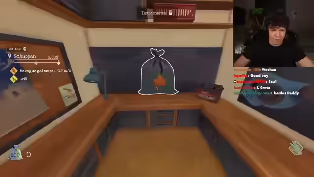 02:15:12Während des Spiels kämpft der Streamer mit der niedrigen Sensitivität und der ungenauen Steuerung. Er fühlt sich wie der 'letzte Idiot', weil er anfangs das Laub mit der Hand Blatt für Blatt sammeln muss. Nach einigen Upgrades wird der Prozess effizienter, doch der Fortschritt im Freiräumen des Gartens ist langsam. Er überlegt, ob er einen Laubrechen sparen oder weitere Upgrades kaufen soll.