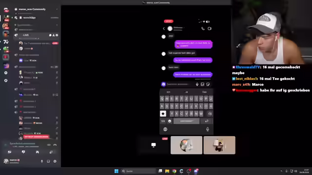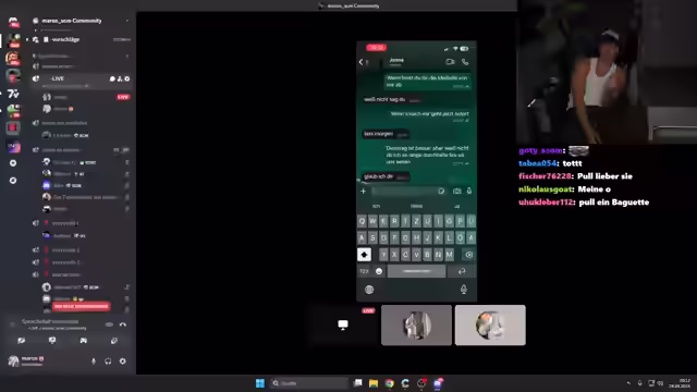 02:55:28Der Streamer coacht Alex live bei einem Dating-Experiment mit einem Mädchen namens Lotte aus seiner Klasse. Alex zeigt den Chatverlauf, und der Streamer gibt ihm Anweisungen, was er schreiben soll, um ein Date zu vereinbaren. Der Streamer gibt humorvolle Ratschläge und versucht, Alex zu helfen, selbstbewusster zu wirken. Der Chat beteiligt sich aktiv an der Beratung und gibt Feedback zu Alex' Nachrichten. Es wird ein Treffen für Donnerstag vereinbart, wobei Alex sein Training verschiebt. Der Streamer gibt Alex weitere Ratschläge, wie er sich verhalten soll, und betont, dass er ehrlich sein und sich nicht verstellen soll. Es kommt zu einigen Missverständnissen und komischen Situationen, die für Unterhaltung sorgen. Der Streamer und der Chat analysieren Lottes Antworten und versuchen, ihre Absichten zu deuten. Der Streamer gibt Alex den Rat Gummis zu benutzen.