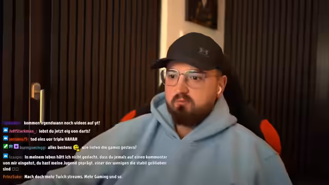 01:28:25Der Streamer gibt Einblicke in sein Privatleben, so hat er aktuell eine Freundin und ist unter Vertrag bei Target. Er unterhält sich über seinen Dart-Sport, wobei er Turniere als sein Training ansieht und nicht das stundenlange Üben. Er lobt die Mentale von Profis wie Luke Littler und Gabriel Clemens und bewertet den Mythos des unreflektierten Spielers als falsch. Auch persönliche Themen wie seine Gewichtsveränderung und seine Gesundheit, er ist seit über zwei Jahren symptomfrei, werden angesprochen.