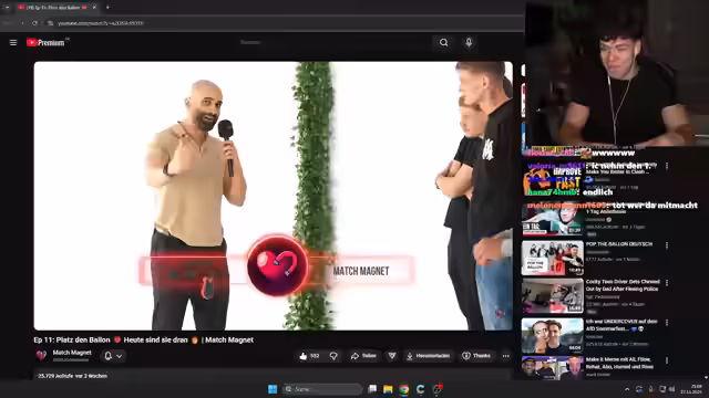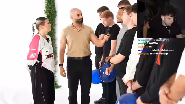 01:30:35Der Stream beginnt mit der Vorstellung der männlichen Teilnehmer, darunter Yahya (20, Industriemechaniker), Julian (23, Kaufmann), Rustem (20, Versicherungskaufmann), Talib (22, Anlagemaschinenführer), Kaju (20) und Marvin (23, Elektrotechnikstudent). Der Moderator Sepp begrüßt die Zuschauer und erklärt die Regeln des Formats, bei dem Ballons geplatzt werden, wenn eine Teilnehmerin nicht dem Typ entspricht. Es wird betont, dass der Stream mit Reason nicht der einzige sein wird und weitere spannende Inhalte geplant sind. Die Spannung auf die erste Teilnehmerin ist groß, und es wird klargestellt, dass der Ballon sofort platzen kann, wenn sie nicht dem Typ entspricht.