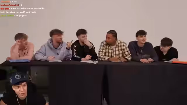 00:39:01Nachdem der Discord-Chat bearbeitet wurde, beginnt Marco mit dem neuen Format 'Erkenne den Schwarzen'. Zusammen mit einem Experten namens Sidney und seinem Chat versucht er, aus sechs Personen, die grüne Jacken tragen und ihre Gesichter verbergen, die schwarze Person zu identifizieren. Die Teilnehmer stellen sich nacheinander vor und beantworten Fragen über Herkunft, Küche und Kultur, um Hinweise auf ihre ethnische Zugehörigkeit zu geben.