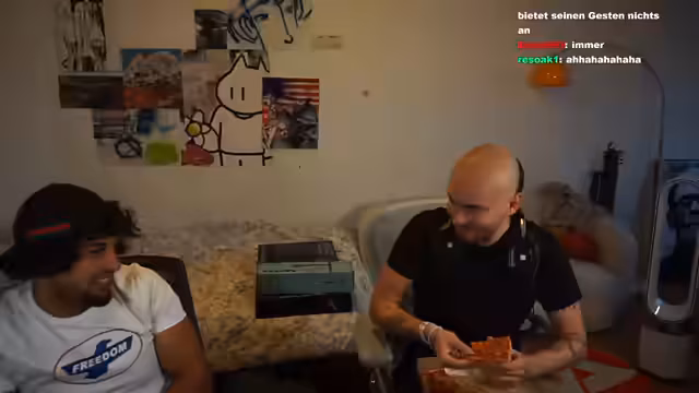 01:42:46Der Streamer freut sich über das geschenkte T-Shirt und bedankt sich dafür. Er erklärt die Bedeutung des Adler-Symbols auf dem T-Shirt, das ursprünglich aus Amerika-Memes stammt und später von einer Freundin auf ein Geburtstags-T-Shirt gedruckt wurde. Viele Albaner würden das Symbol feiern. Er wird auf seine Haare angesprochen und erzählt, dass er früher verschiedene Frisuren hatte, bevor er Haarausfall bekam. Er trägt seine aktuelle Frisur mit Ehre und Stolz, da sie ein Alleinstellungsmerkmal sei. Er habe gehört, dass Jugendliche mit ähnlichem Haarausfall seinen Haarschnitt kopieren würden. Er betont, dass man viel abkönnen müsse, um diese Frisur zu tragen, da man auf der Arbeit wahrscheinlich komisch angeschaut werde. Er verweist auf Jean-Michel Basquiat als einen Künstler, der ebenfalls eine ähnliche Frisur hatte. Abschließend fragt er nach coolen Orten in Berlin, die mit der Sternschanze in Hamburg vergleichbar sind.