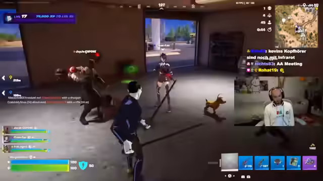 03:56:15Der Streamer befasst sich mit technischen Problemen, insbesondere mit den Einstellungen seines Laptops und dem PS5-Spiel 'Fortnite', und sucht nach Lösungen. Anschließend startet er eine Vorstellrunde für die Mitspieler. Dabei stellt sich der Streamer selbst als 'arbeitssuchend' vor, J.Jo gibt sein Alter von 39 Jahren an und Alpha Kevin erwähnt seine Tätigkeiten und seine Top-5-Platzierung im Spiel.