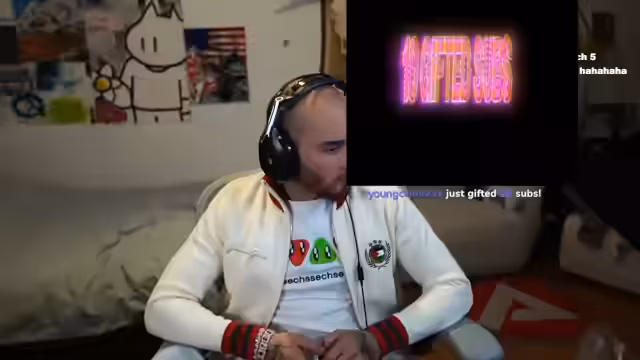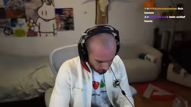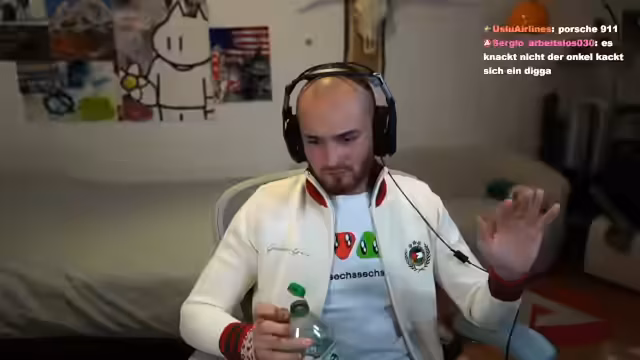 00:06:01Der Stream beginnt mit einer lockeren Begrüßung des Chat. Der Streamer berichtet von seinem morgigen Englischunterricht und der damit verbundenen Arbeitsunlust. Er erwähnt seine Absicht, mit Ali eine Gehörverständnisübung zu üben und sich dabei über dessen angebliche Ungebildetheit amüsieren zu wollen. Des Weiteren bewirbt er unbezahlte Werbung für eine Jacke von Generation Gaza, deren Qualität er als „geistgestört“ bezeichnet, und erwähnt, dass sie bereits ausverkauft ist.