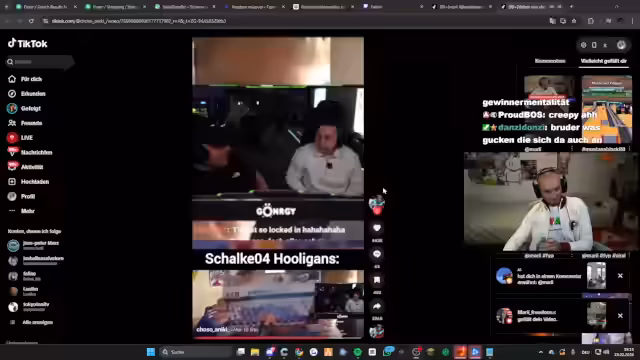 00:37:12Die Stimmung wird ernster, als der Streamer von einem traurigen Video über eine Affenmutter berichtet, die ihr Kind verstoße. Er zeigt große emotionale Betroffenheit und droht der imaginären Täterin mit Konsequenzen. Diesem ernsten Thema schließen sich abschweifende und humoristische Themen an, wie die Diskussion über die Bedeutung von Füßen, die Übersetzung von englischen Texten mit Ali und der Einsatz von Polizisten auf einer Messe.