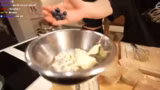 01:07:31Die Teilnehmer gehen an die Arbeit, indem sie einen Teig anrühren und diverse Zutaten hinzufügen, darunter Blaubeeren, Schokostückchen und schließlich auch eine Flasche Weißwein, was zu erheblicher Verwirrung führt. Der Backprozess gestaltet sich chaotisch, da der Streamer sich an widersprüchliche Anweisungen ("goldbraun braten" vs. "backen") halten muss und sein Teig ständig die Konsistenz ändert. Währenddessen treten wiederholt technische Probleme auf, wie hängender Stream und ausfallende Handys, was die Kommunikation unterbricht.