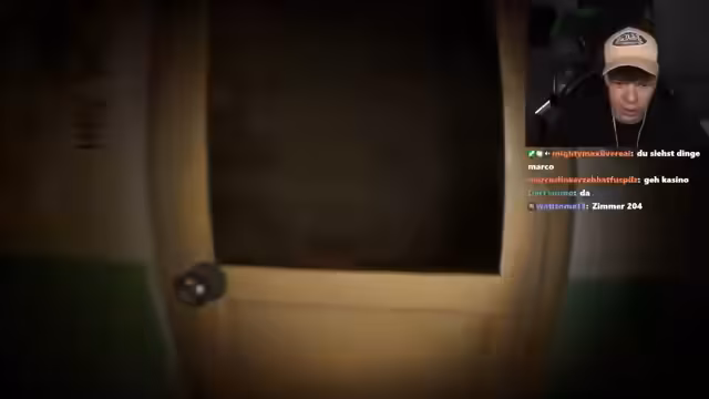 02:47:43Im Spiel werden mehr und mehr unheimliche Geräusche wie klackernde Murmeln und seltsame Klappern deutlich hörbar, die aus verschiedenen Richtungen kommen, meist aus dem darüberliegenden Stockwerk. Dies deckt sich mit Zeitungsartikeln, die der Streamer findet. Es kommt zu visuellen Hinweisen wie gezeichneten Bildern einer alten Frau und einer Atmosphäre starker Angst, die den Streamer zu Fluchtversuchen und Entscheidungen unter Druck zwingt.