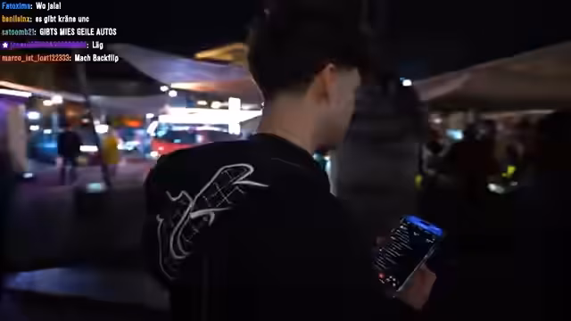 01:50:36Der Streamer wundert sich, warum sich Leute nicht trauen, ihn anzusprechen, obwohl sie ihn erkennen. Er entdeckt eine Filmvorführung an einer Kirche und findet den Stadtverkehr weiterhin sehr anstrengend. Der Streamer betritt die IAA und sucht nach dem BMW-Stand, wobei er sich über die Enge und die vielen Menschen beschwert. Er schließt aus, dass ein Mann Elon Musk ist und vermutet, dass es sich um Markus Söder handelt. Der Streamer verlässt den Bereich wieder, da er ihn nicht besonders spannend findet. Er entdeckt eine Lightshow und vermisst Zuckerwatte. Der Streamer sucht weiterhin den BMW-Stand und findet ihn schließlich. Er äußert sich positiv über einen Mercedes-Stand und filmt diesen. Der Streamer fragt sich, ob er zur Maximiliansstraße weitergehen soll und ob das Netz stabil läuft. Er entdeckt einen BMW-Stand und kommentiert, dass jemand vom E-Roller gefallen ist. Der Streamer fragt nach den Lieblingsautomarken der Zuschauer und äußert seine Präferenz für BMW.