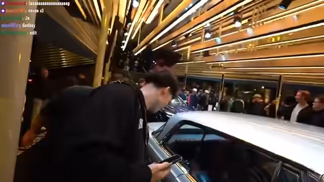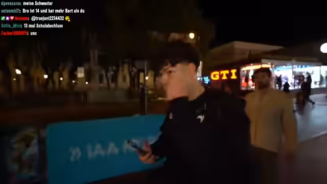 02:15:30Der Streamer fragt sich, wo er sich befindet und ob er sich noch in München befindet. Er geht durch einen Bereich mit lauter Musik und erreicht den Odeonsplatz. Der Streamer sucht weiterhin nach einem Audi-Stand und fragt sich, ob ein R8 ausgestellt ist. Er vermutet, dass sich Audi weiter hinten befindet und fragt die Zuschauer, ob sie ihn in einen Stripclub oder ein Casino schicken wollen. Der Streamer entdeckt Bosch-Fahrräder und fragt sich, wofür diese geeignet sind. Er findet ein GTI und wird von einem Mann mit einer Filmkamera gemockt. Der Streamer fragt die Zuschauer nach ihrer Meinung zum GTI und ob sie ihn muten sollen. Er findet Audi weiterhin nicht und fragt sich, ob es überhaupt einen Stand gibt. Der Streamer entdeckt einen Lamborghini-Stand und wird von Zuschauern korrigiert, die ihn als Urus identifizieren. Er findet Smart und Renault und kommentiert den ungewöhnlichen Bodenbelag. Der Streamer kündigt an, dass er im Rückblick nach Audi suchen wird und ist enttäuscht, dass Jalal nicht vorbeigekommen ist.