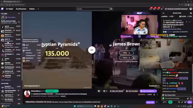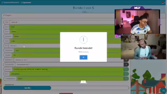 04:31:42Der Stream beginnt mit provokanten und vulgären Inhalten, darunter eine wiederholte Erwähnung von Genitalpilz als vermeintlichem Scheidungsgrund. Dies mündet in eine Serie von obszönen Pornotiteln und gewaltverherrlichenden Szenarien wie 'Gangbang in der Nervenanstalt'. Streamer wie Eli Mali, Danny Medi und Willi Kroko treten bei 'Stadt-Land-Fluss' an, wobei Mali gegen seinen Vater antritt und die Ernsthaftigkeit des Spiels hervorhebt. Der Stream selbst wird als historisch bezeichnet, da die Teilnehmerschaft ein Unentschieden erzielt und eine weitere Runde angedeutet wird.