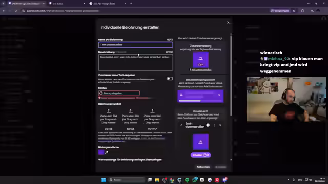 00:07:41Der Streamer führt neue Kanalpunkte ein und einige werden wieder retiret. Es folgen verschiedene interaktive Aktionen, bei denen Viewer durch Kanalpunkte spezielle Aktionen auslösen können. Dazu gehören 'Mali eine Minute beleidigen', 'Bunker zu für 15 Minuten', 'Spucken für 100k', 'Münze werfen bei 200k' und viele weitere. Besonders hervorgehoben wird das Münzwurf-Spiel, bei dem Highroller wie Hippo und Emre mit hohen Einsätzen teilnehmen. Die Community zeigt großes Interesse an diesen interaktiven Elementen.