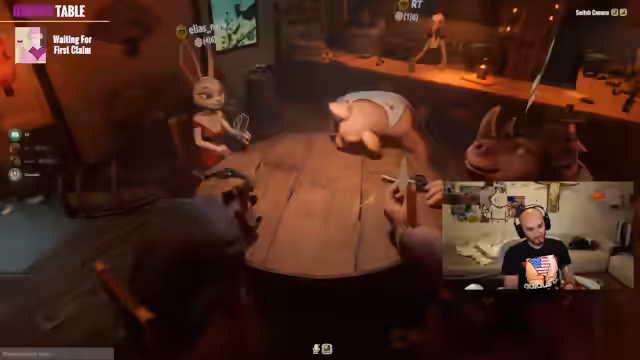 04:13:24Der Streamer stellt 'Liars Bar' vor: Ein Spiel, bei dem Spieler Karten legen (Damen/Könige) und lügen, um Karten loszuwerden. Regeln erklärt: Leertaste + E zum Legen, A/D für Kartenauswahl, X für Lügen-Warnung. Bei aufgedeckter Lüge folgt russisches Roulette (0/6 Kugeln). Chaos-Modus wird aktiviert, wo nur eine Karte erlaubt ist. Mit Spielern wie G-Tasty und Elias kommt es zu technischen Problemen beim Kartenlegen und ersten toxischen Momenten mit Beleidigungen.