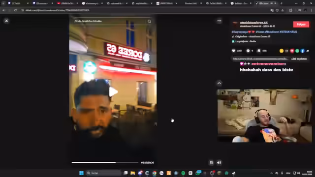06:35:13Von Dubai aus bestellt Marli einen Berliner Döner und bewertet verschiedene Läden. Ein Anbieter verkauft u.a. Pizza, Burger und Nudeln – was er als Qualitätsmerkmal ablehnt ("Rattenfleisch"). Ein "Delicato"-Laden wird für fehlende Fotos kritisiert, während "Seven Days" für übertriebene Werbeversprechen ("Original Beef") und fragwürdige TikTok-Marketingstrategien verantwortlich gemacht wird. Abschließend lobt er einen Laden, der 150 Personen fasst und Innenraumrauchen erlaubt, bevor er auf die Popularität von Kinder-Bueno-Snacks in Berlin eingeht.