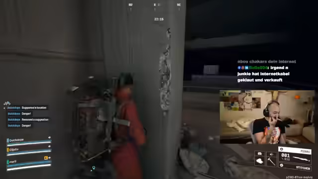 01:46:33Der Streamer demonstriert eine manipulative Taktik: Er nutzt die Chat-Kommunikation, um Gegner zu beruhigen ("Wir sind freundlich"), attackiert sie dann aber hinterrückisch. Ein besonders geplanter Verrat wird als "ekelhafter Plan" mit ACTV beschrieben: In der "Begrabene Stadt" während der nächtlichen Plünderung sollen Spieler in Extraction-Stationen gelockt und dort überfallen werden. Konkret wird vorgeschlagen, Sprengstoff in Aufzügen zu platzieren und abzuzünden, wenn andere Spieler ihn benutzen. Ein Beispiel für solchen Verrat wird direkt danach umgesetzt: Einem Spieler, der dem Streamer zuvor geholfen und Episches Loot gegeben hatte, wird trotzdem in den Rücken geschossen. Dies führt zu einer Diskussion über Hass auf Reddit, weil solche Plays als ehrenlos gelten.