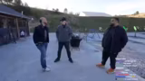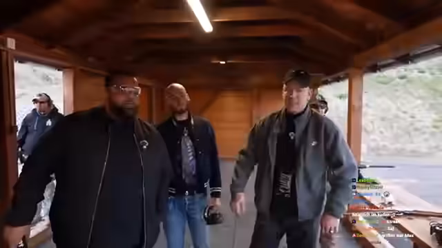 01:05:00Zum Abschluss schießen sie mit der AK, die als sehr laut und mit starkem Rückstoß beschrieben wird. Ali zeigt hierbei Fortschritte in seiner Zielfähigkeit. Der Stream endet mit der Zusammenfassung der Aktivitäten und Dank an das Produktionsteam und die Zuschauer. Die Gruppe verspricht, zukünftig weitere Streams mit ähnlichen Inhalten zu veranstalten.