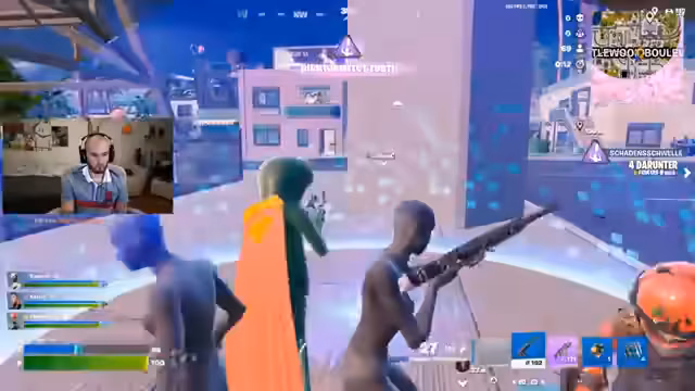 05:00:35Der Stream beginnt mit intensiver Gameplay-Sequenz. Die Spieler bewegen sich aggressiv durch die Map, tauchen in Gebäude ein und nutzen Fähigkeiten wie Impulse-Effekte und Bubbles, um sich zu verteidigen und vor Feinden zu verstecken. Es wird eine unmittelbare Bedrohung durch gegnerische Teams geschildert, die eng um Positionen und Ressourcen kämpfen. Der Fokus liegt auf der schnellen Bewegung, dem Sammeln von Loot und dem Koordinieren der Angriffe in knappen und risikoreichen Situationen.