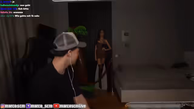03:13:43Die Stimmung im 'Intrusion'-Spiel eskaliert, als mitten in der Nacht ein Unbekannter an der Tür klingelt und eindringen will. Der Streamer muss schnell eine Entscheidung treffen, ob er die Tür öffnet oder sich versteckt. Der Eindringling gibt sich als Nachbar Jake aus, doch seine Absichten sind unklar. Der Streamer sperrt sich in seinem Zimmer ein, blockiert das Fenster und ruft laut um Hilfe. In dieser dramatischen Situation taucht Nachbarin Carla auf, ruft nach der Polizei und der Eindringling wird überwältigt. Der Streamer spekuliert im Chat, was passiert wäre, wenn er die Tür geöffnet hätte.