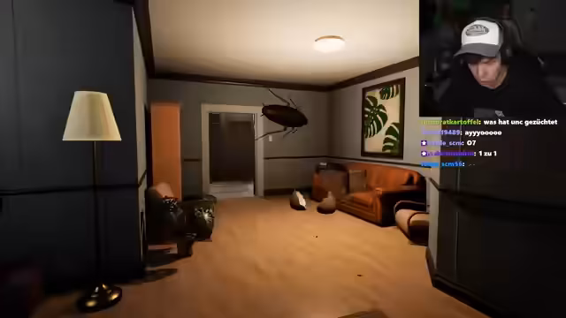 01:41:31Nach dem Öffnen des Pakets und dem Fund der Monsterpuppe eskalieren die Ereignisse im Spiel. Der Spieler versucht, die Puppe loszuwerden, indem er sie in den Müll wirft, doch sie taucht immer wieder auf. Die Umgebung verändert sich auf unerklärliche Weise: Türen verschwinden, Lichter flackern, und es erscheinen Notizzettel an den Wänden. Der Spieler erlebt wiederkehrende Albträume und eine Endlosschleife von Ereignissen, die ihn an seinem Verstand zweifeln lassen. Die Suche nach Beruhigungstabletten wird zu einem zentralen Element, um mit der zunehmenden Angst und Verwirrung umzugehen. Die alltäglichen Routinen wie Duschen, Wäschewaschen und Fernsehen werden von unheimlichen Geräuschen und Erscheinungen unterbrochen. Die Grenze zwischen Realität und Albtraum verschwimmt, und der Spieler versucht verzweifelt, einen Ausweg aus dieser surrealen Situation zu finden. Die Kommunikation mit dem Chat wird wichtiger, um die Geschehnisse zu verarbeiten und mögliche Lösungen zu finden.