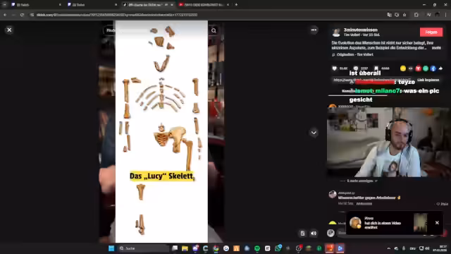 01:43:07Eine anfangs sarkastische Bemerkung über die Evolutionstheorie mündet in eine ausführliche wissenschaftliche Erklärung. Der Streamer argumentiert mit Fakten, darunter die Entschlüsselung des Genoms, und nennt den letzten gemeinsamen Vorfahren aller Lebensformen, Luca. Er benennt verschiedene Zwischenstufen in der menschlichen Evolution, wie Australopithecus, und betont die wissenschaftliche Evidenz für die Abstammung des Menschen von Primaten.