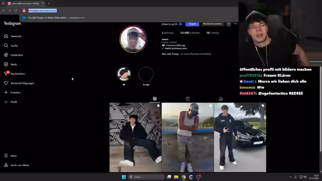 02:04:13Die Vorbereitung eines weiblichen Instagram-Fake-Accounts steht im Mittelpunkt. Es werden potenzielle Konten wie Personen mit "toughen" Profilbildern wie Autos oder bestimmte Creator wie Sophie Rain und Breaky Hill als Follows in Betracht gezogen. Es herrscht eine intensive Diskussion im Chat über, wer als Follow "valid" erscheint, um den Account glaubwürdig zu gestalten. Ziel ist es, einen Account zu erstellen, der später für einen Loyalitätstest eines Freundes genutzt werden kann.